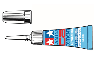 Tamiya CA Cement Easy Sanding 87187 No more worrying about excess cement; after drying, this CA cement is easy to sand down. Perfect for dealing with small scratches and gaps. Comes in an aluminum with twist-off cap. Contents: 3g.